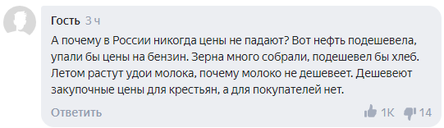 Граждане удивляются и негодуют от того, что не взирая на удешевление сырья, цены на продукты для конечных потребителей всегда только повышаются, но никогда не падают.